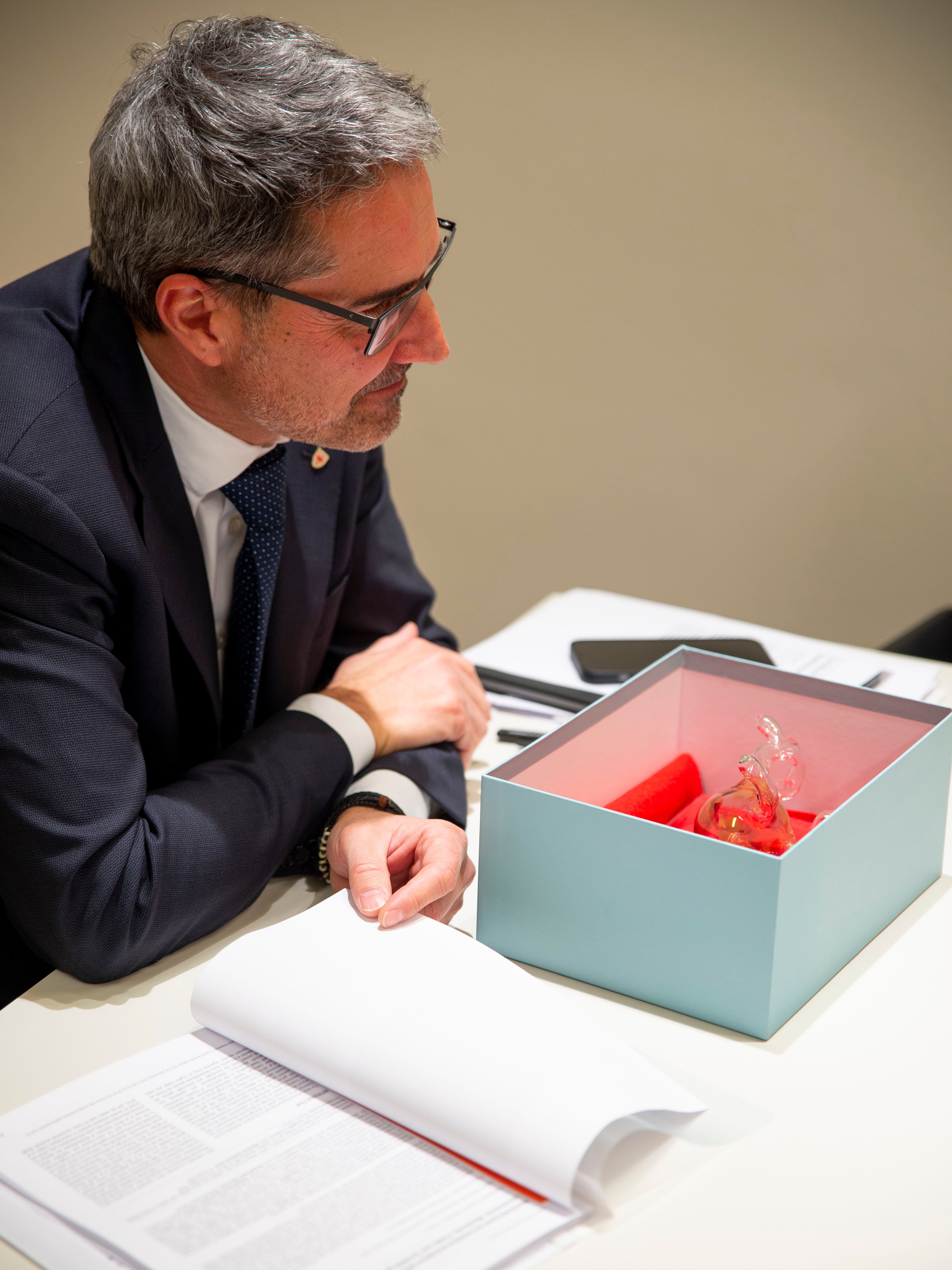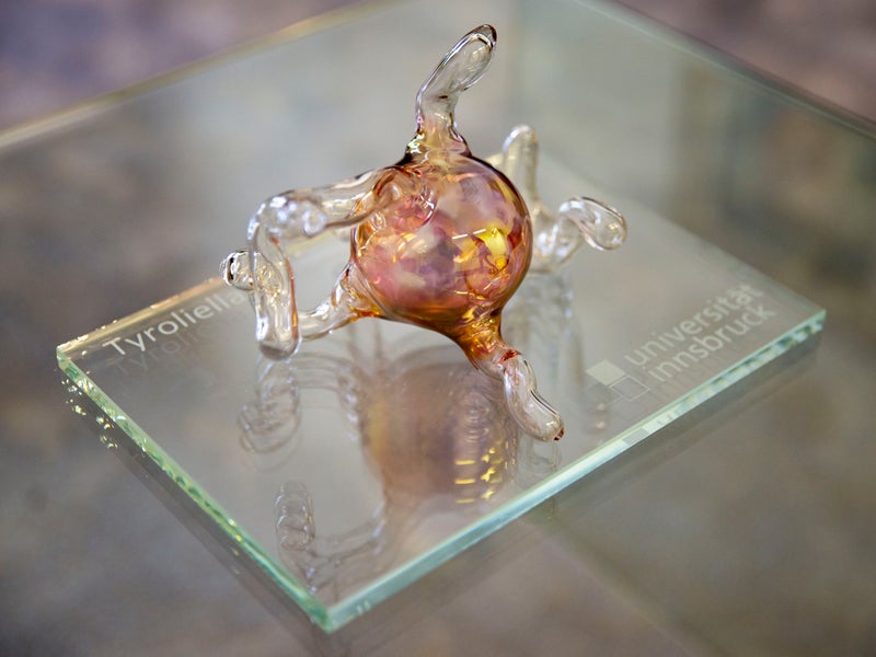 Le spore di un fungo appena scoperto, la Tyroliella, sotto forma di opere d'arte in vetro, sono state presentate ieri al presidente Kompatscher dalla microbiologa altoatesina Ursula Peintner.