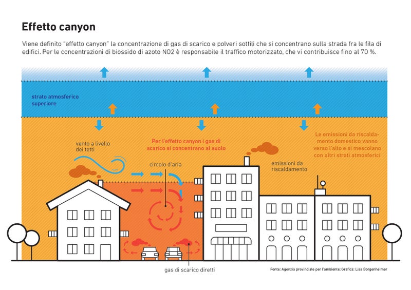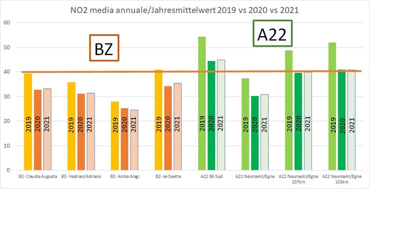 “Nel 2021 il valore limite annuale per il biossido di azoto (NO2) di 40 microgrammi/m3 è stato superato unicamente in due stazioni di misura della rete di monitoraggio della qualità dell’aria, ovvero in quelle lungo l’A22 del Brennero - spiega Luca Verdi, direttore del Laboratorio Analisi aria e radioprotezione dell’Agenzia provinciale per l’ambiente e la tutela del clima. L’NO2 è un gas prodotto principalmente dalle emissioni dovute al traffico stradale, in modo particolare dai veicoli diesel, e ad elevate concentrazioni può rappresentare un rischio per la salute. “In ambito cittadino – continua Luca Verdi - si confermano le criticità legate al cosiddetto effetto canyon: lungo le strade trafficate, costeggiate da una serie di condomini, gli inquinanti faticano a disperdersi, e qui sono state raggiunte anche nel 2021 concentrazioni per l’NO2 prossime e a volte superiori al valore limite annuale, nonostante le limitazioni legate alla pandemia. Lo scenario è simile al 2020 e ampiamente migliore del 2019”.