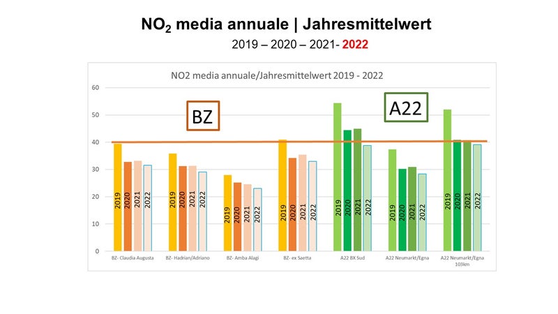 Sebbene nel 2022 sia stato registrato un aumento significativo del traffico rispetto al 2021, raggiungendo i livelli pre-pandemici, non è stato rilevato un peggioramento dei dati della qualità dell’aria. “Uno dei motivi principali è sicuramente da ricondurre al fatto che negli ultimi tre anni sono stati immatricolati più veicoli elettrici, ibridi ed Euro 6 di nuova generazione che emettono molto meno ossidi di azoto rispetto a quelli precedenti”, spiega Georg Pichler, direttore dell’Ufficio Aria e rumore.“
