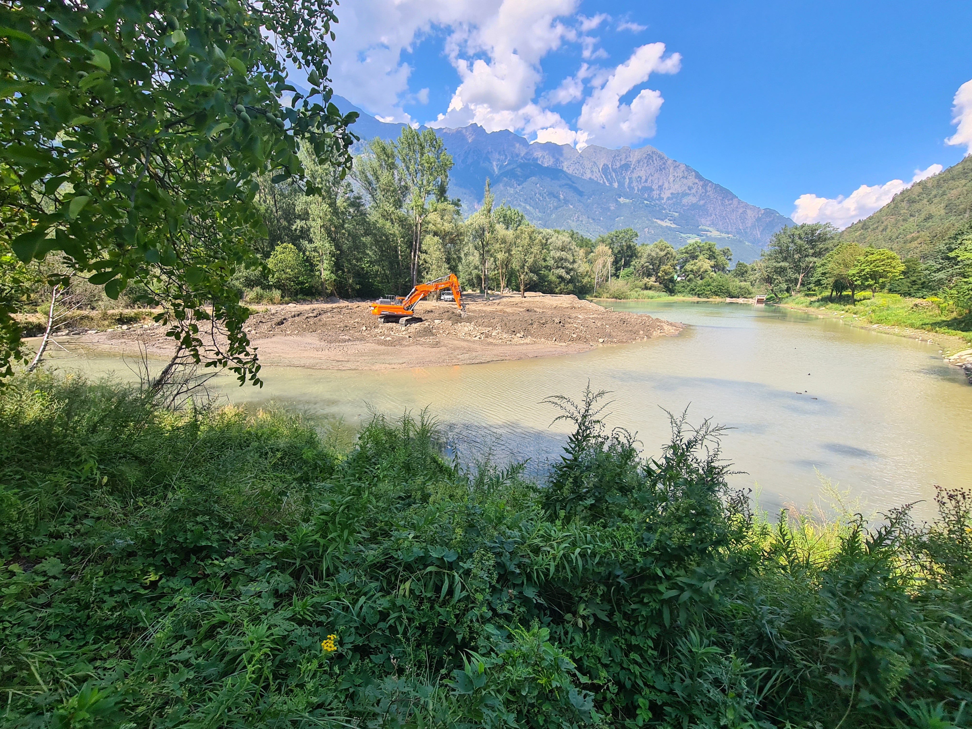 “I Bacini montani stanno adottano le misure necessarie eliminare la pianta invasiva” spiega Peter Egger, direttore dell’Ufficio sistemazione bacini montani Ovest. Il Laghetto di Rablà è un'area ricreativa molto frequentata e quindi si sta intervenendo nell’area con particolare attenzione. "Attualmente utilizziamo due escavatori e nove camion", spiega il responsabile del progetto Martin Eschgfäller: "Dal bacino di ritenzione Lahnbach, di fronte alla rotatoria di Naturno, trasportiamo circa 16.000 metri cubi di materiale pulito al laghetto e lo depositiamo nel laghetto. Si sta inoltre costruendo una diga con pietre ciclopiche e materiale di riempimento tra il torrente e la rientranza del lago a Ovest, in modo che il materiale di riempimento non venga portato via quando il livello dell'acqua tornerà alto".