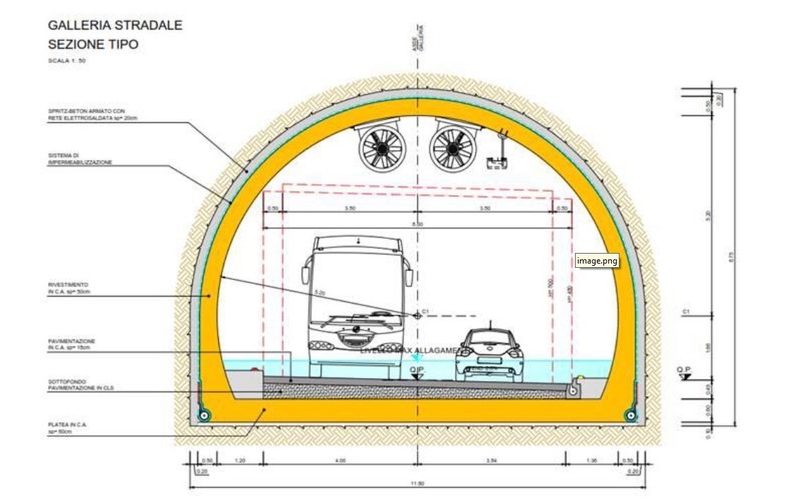 In caso di emergenza la galleria permette il deflusso delle acque alluvionali