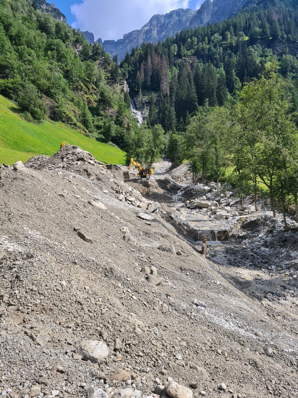 "Insieme al caposquadra Roland Langgartner, utilizzando dodici macchine per il movimento terra, abbiamo ultimato prima di Ferragosto i lavori di rimozione dei detriti principalmente trasportati dal rio Cogolo nella zona di Sant Antonio di Fleres”, riferisce Philipp Walder dell'Ufficio sistemazione bacini montani Nord presso l'Agenzia per la Protezione civile. "Il letto del torrente è ora libero da detriti e gli accumuli di materiale nei prati non rappresentano un rischio: le operazioni proseguiranno a partire dal 29 agosto”. In questo questo lasso di tempo, diversi escavatori rimarranno sul posto, pronti ad affrontare eventuali emergenze.