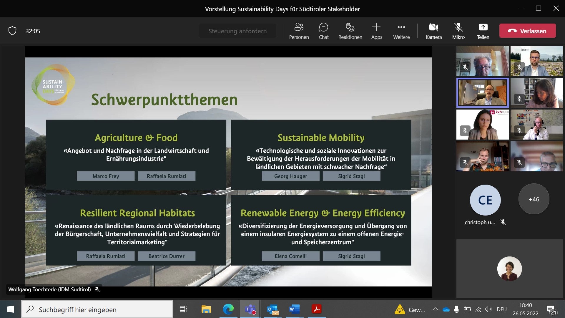 Il 26 maggio nel corso di un incontro online i rappresentanti dei gruppi d'interesse hanno presentato le Giornate della sostenibilità 2022. Kompatscher: "Creare consapevolezza culturale".